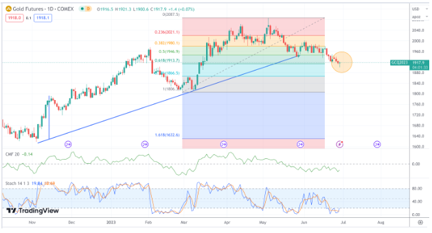 It’s clear gold bulls are trying to defend the 61.8% retracement range. $1,900 is a critical support line. If gold falls below this, the next major support level would be at around $1,800.