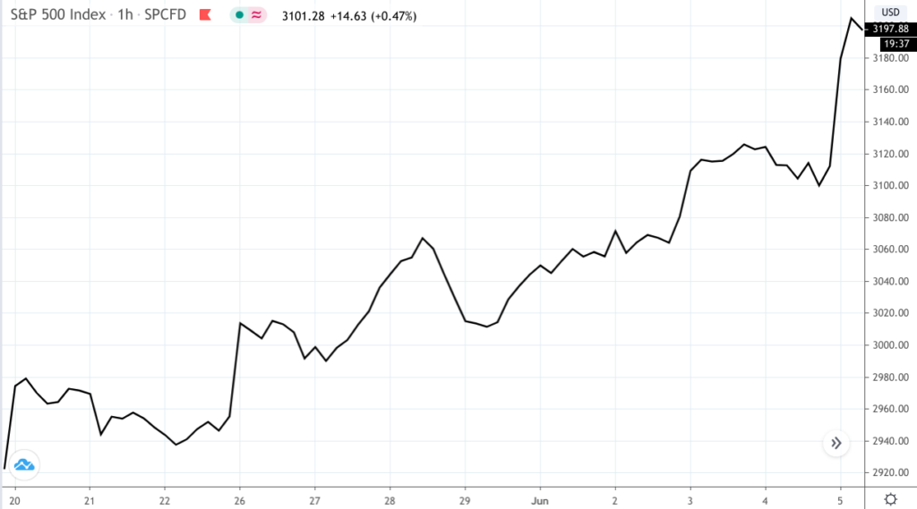S&P 500 (SPX) – May 20 to June 5, 2020 (Data source: Tradingview)