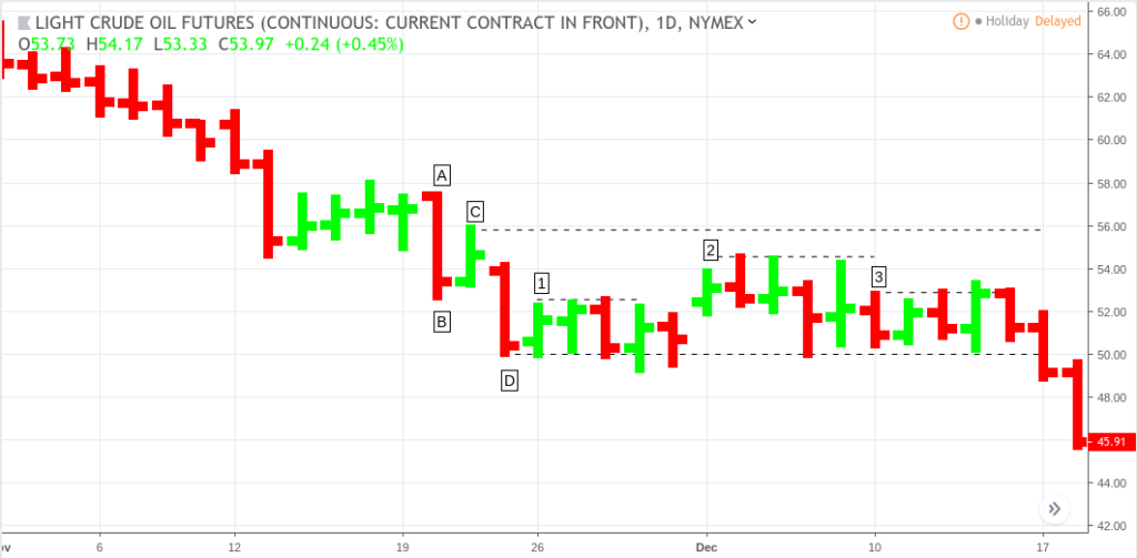 Crude Oil Futures (continuous contract) Daily Chart – Nov, 1 to Dec 18, 2018