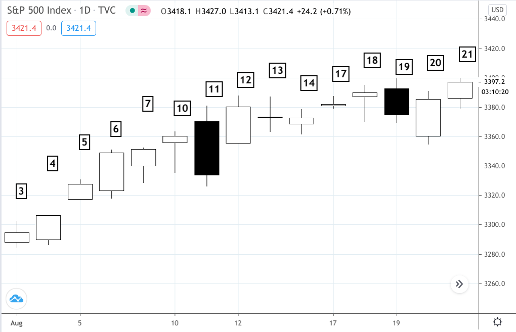 S&P 500 – Daily Chart – August 3 to 21, 2020 (Source: Tradingview)