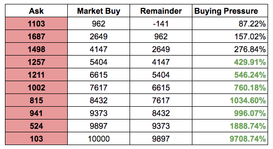 Given that you need to fulfill your fund’s allocation ASAP, you decide to buy it all at once, knowing that your actions are likely to move price as soon as you hit all of those asks.