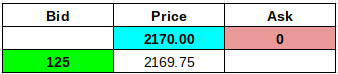 The ask is now at zero (someone purchased all of it) and the “last trade” is now at 2170.00.