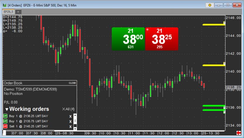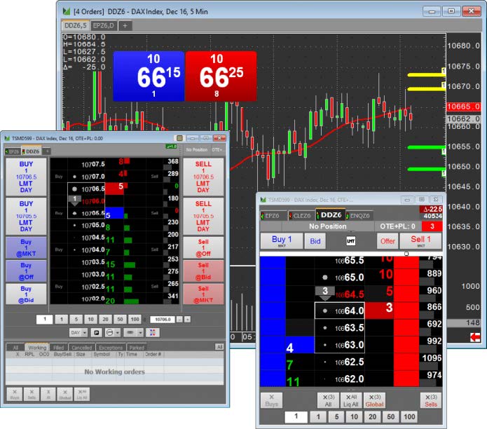 • Full Depth of Market, Realtime Profit and Loss