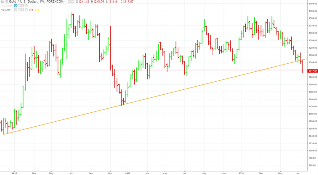 Spot Gold Weekly Chart November 23, 2015 to July 19, 2018