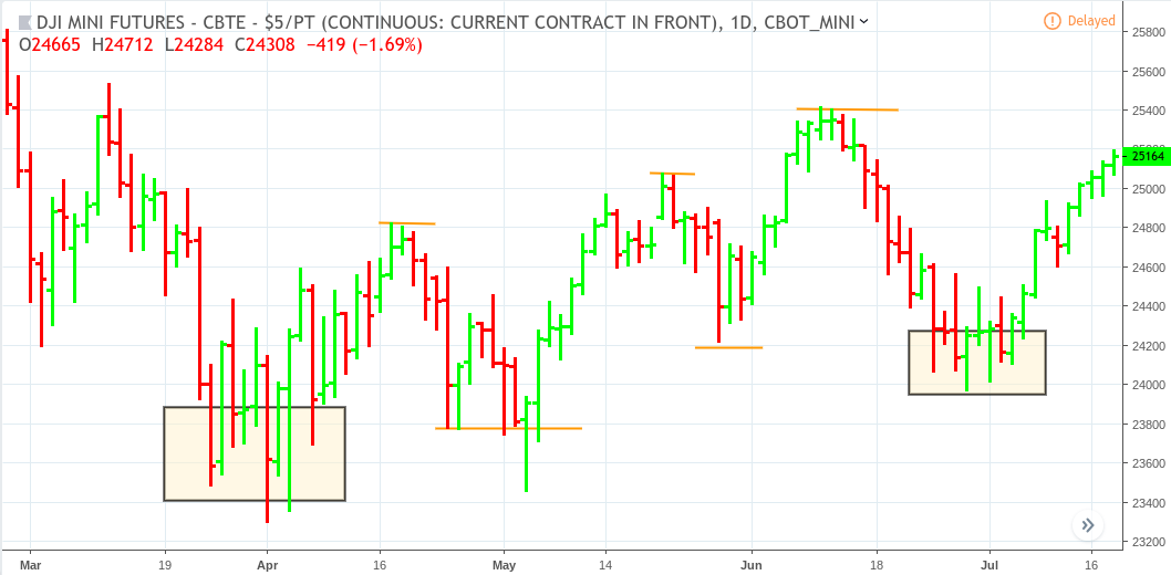 E-Mini Down (YM continuous) February 27 to July 18, 2018