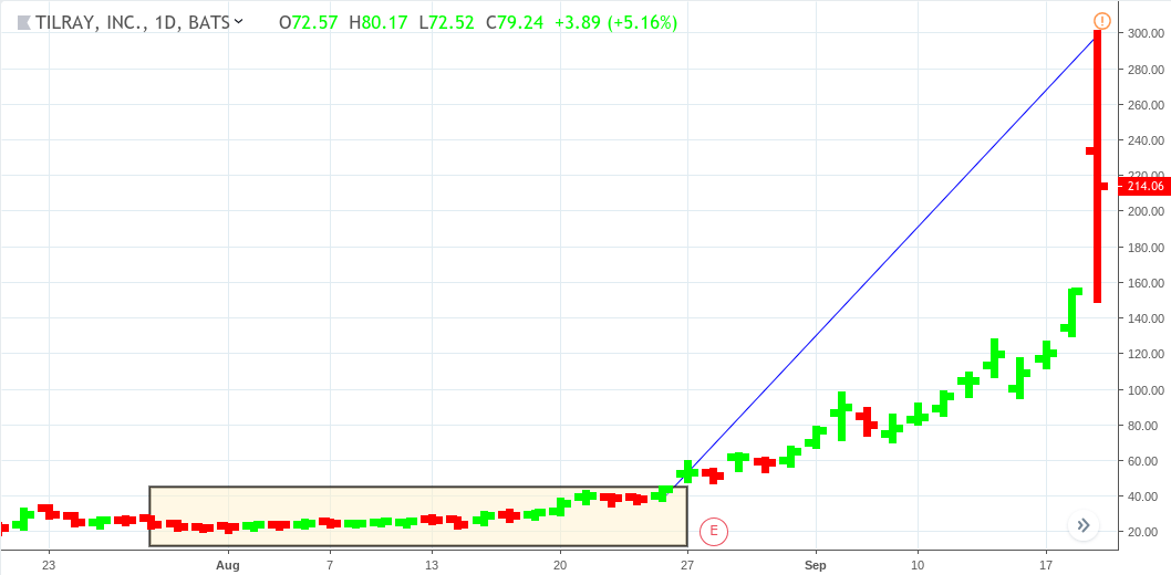 Tilray stock (TLRY) from July 19 to September 19, 2018