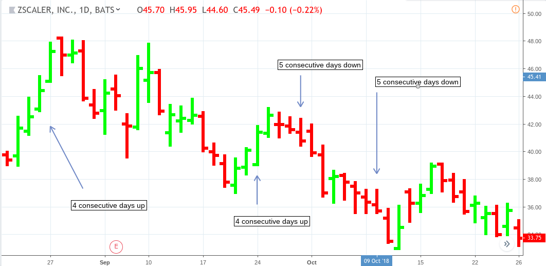 If you’re looking for a price swing or a retracement to reverse, paying attention to consecutive days up or down can help. Despite popular opinion, however, there is no reliable “average” number of days indicating when a reversal may occur.
