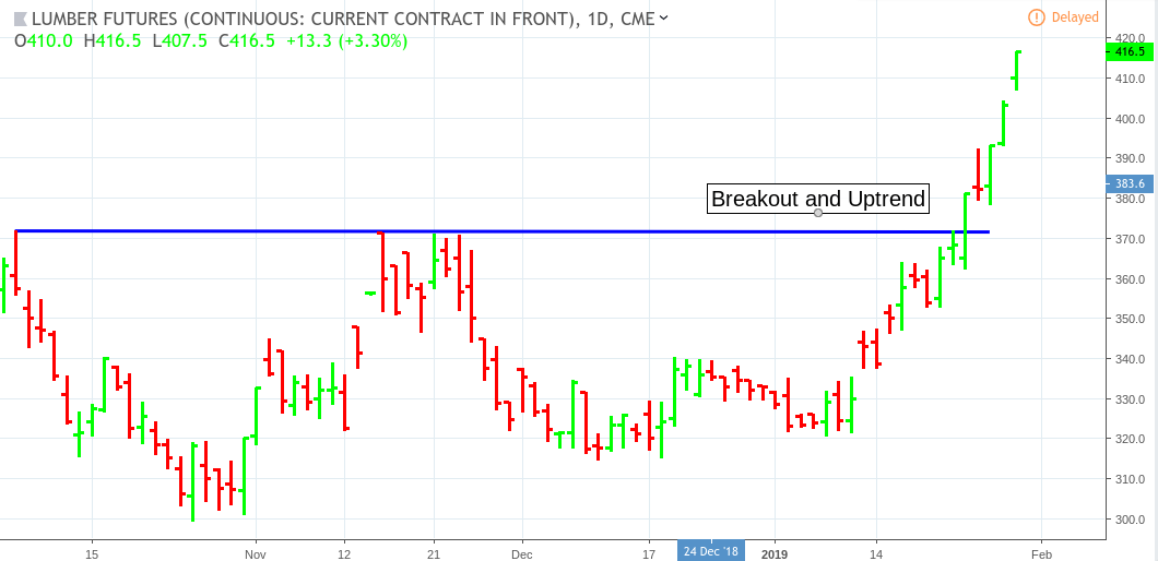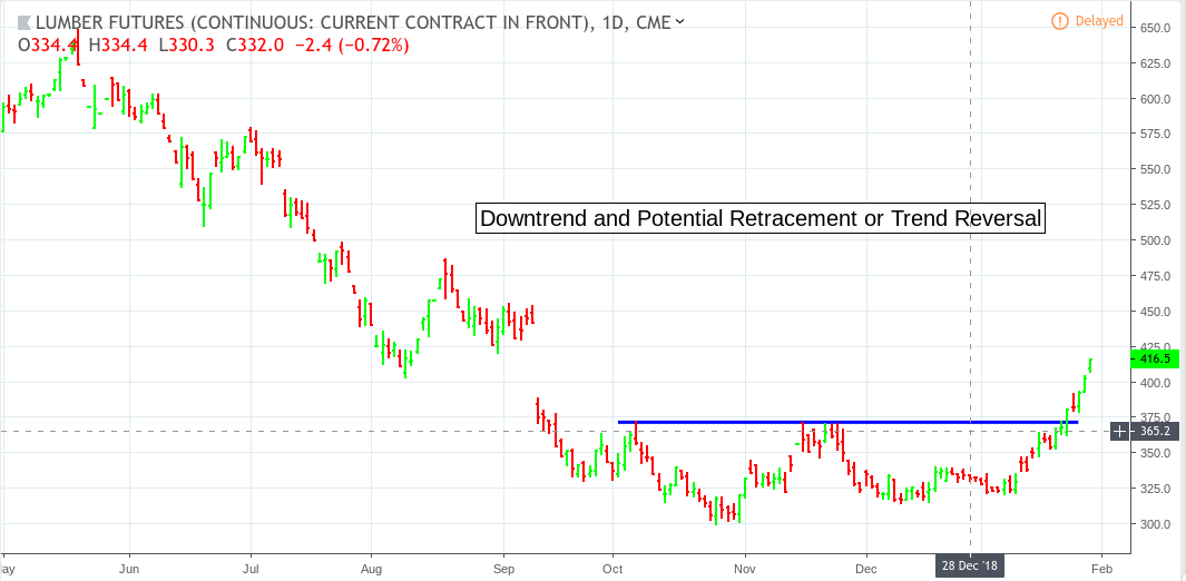 Lumber (LS continuous) Daily chart from May 1, 2018 to January 30, 2019