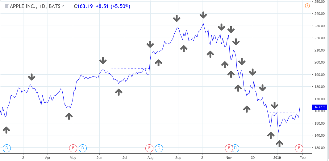 Apple, Inc. (APPL) Daily chart from February 2, 2018 to January 30, 2019