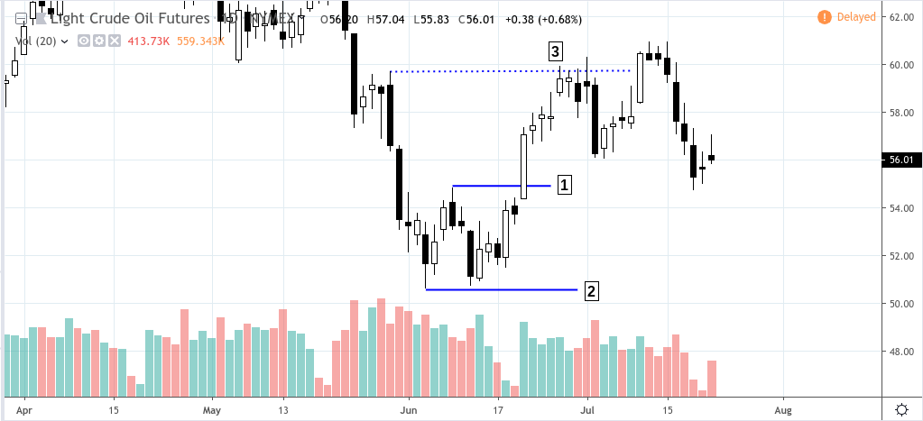 Crude Oil (CL) Daily – March 28 to July 22,, 2019