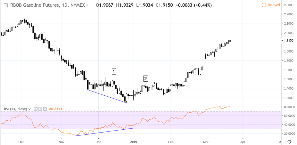RBOB Gasoline (RB continuous contract) Daily Chart from 9/14/2018 to 3/22/2019