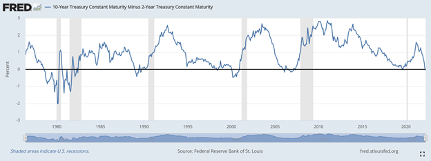 - And an inverted yield curve almost always precedes a recession.