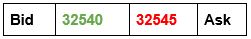 A trader is willing to buy one YM contract at the price of 32540, but the lowest price a seller is willing to sell a contract is at 32545, one tick higher.